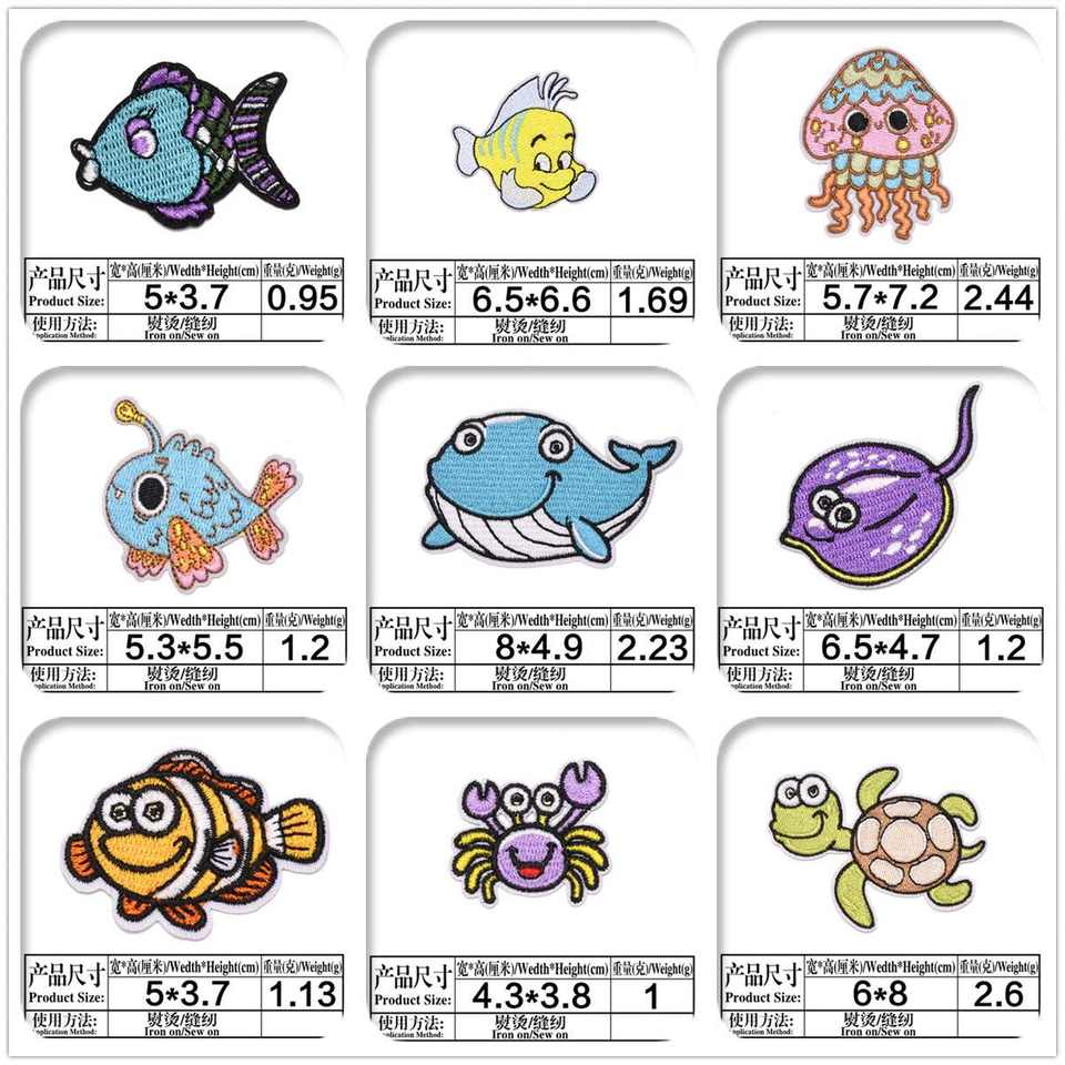 Parche Bordado de Animales Marinos de Alta Calidad con Diseño Especial Personalizado para Ropa