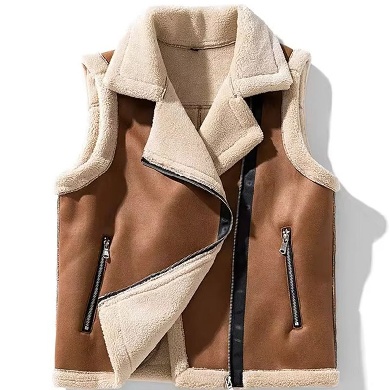 Chaleco de Piel Sintética para Hombre, Estilo Personalizado de Alta Calidad, Cálido para Otoño, Cortavientos, a la Moda, con Botones, Cuello en V, Tejido de Punto