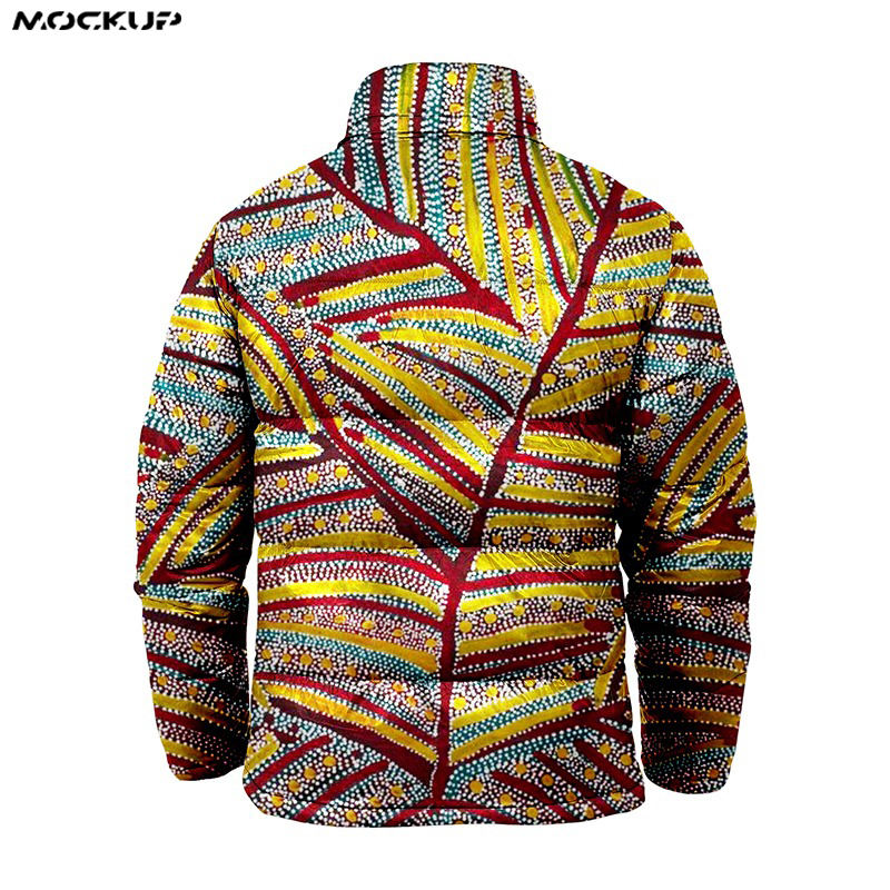 Chaqueta Acolchada de Invierno con Cuello Alto, Diseño Psicodélico Personalizado por Sublimación, de Alta Calidad