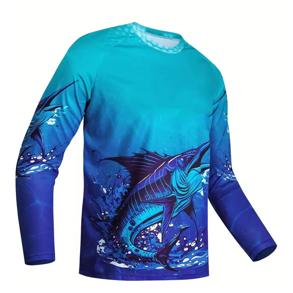 Camisa de Pesca de Poliéster Sublimada Personalizada de Alta Calidad con Manga Larga de Secado Rápido y Diseño de Talla Grande