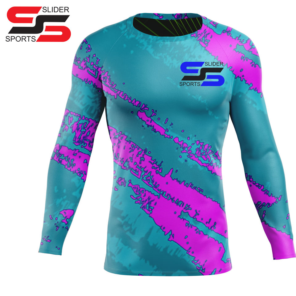 Sublimación personalizada de alta calidad Impreso Rash Guard Longitud larga Patrón liso Compresión Estilo deportivo Entrenamiento de lucha al por mayor