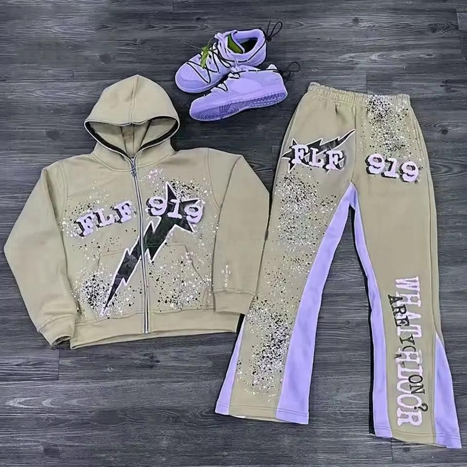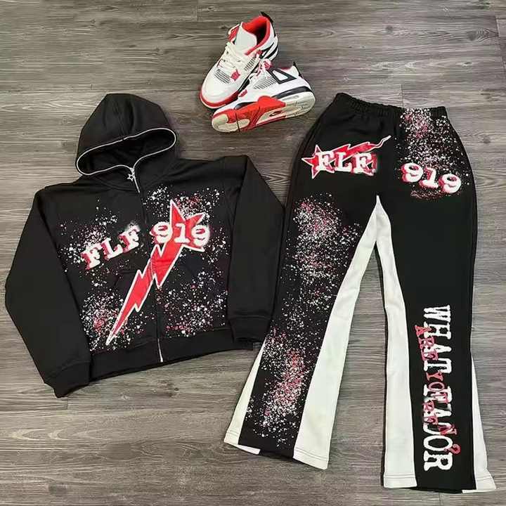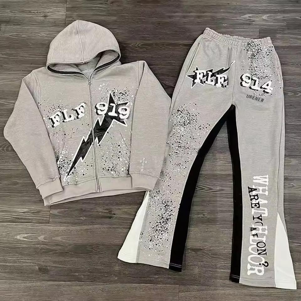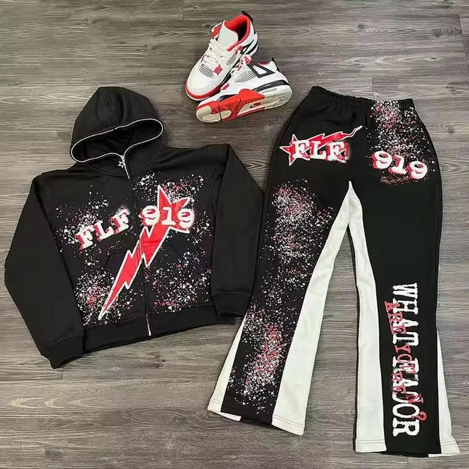 AZ-MSFS-1:Conjunto de Sudadera con Capucha y Pantalones Deportivos Apilados