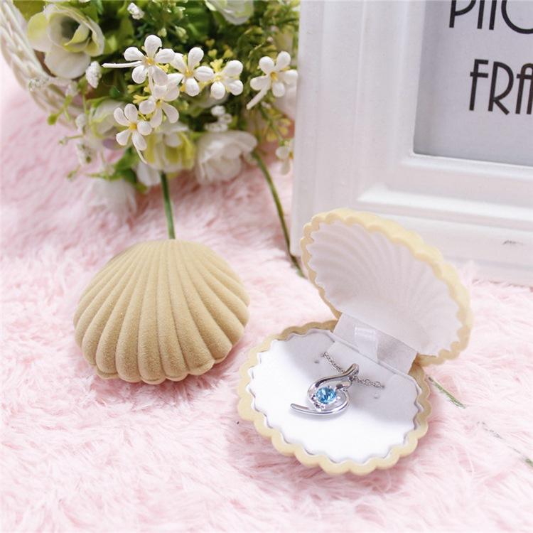 Nombre del producto:Caja de joyería de terciopelo con forma de concha.