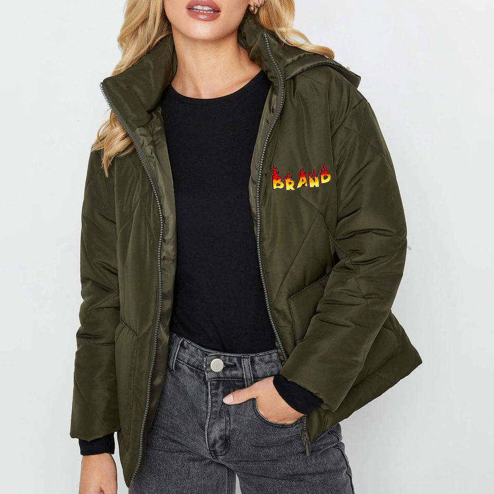 Chaqueta Acolchada de Invierno para Mujer, de Alta Calidad, Personalizada, Cálida, Rellena de Algodón, Casual, Resistente al Viento, Gruesa, con Capucha, Tejida, Transpirable, 90%