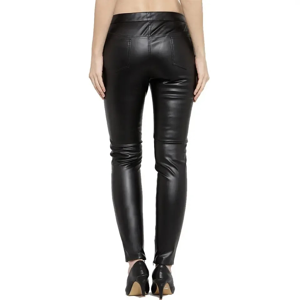 Palabras clave:Pantalones de cuero negro liso de las mujeres