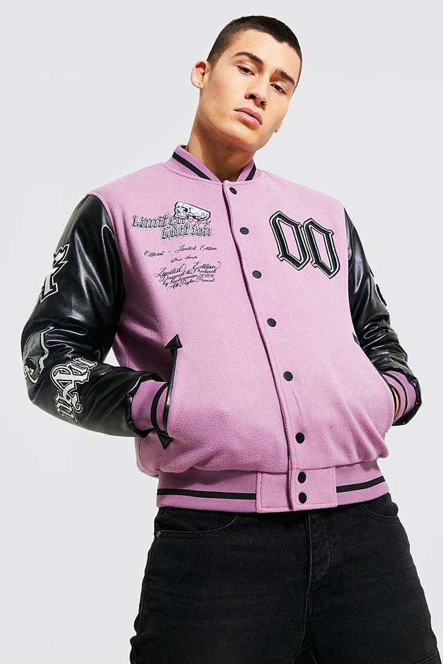 Chaqueta universitaria de alta calidad personalizada, cuerpo de lana, Mangas de cuero, Color sólido, liso, en blanco para invierno, estilo informal, Puff directo