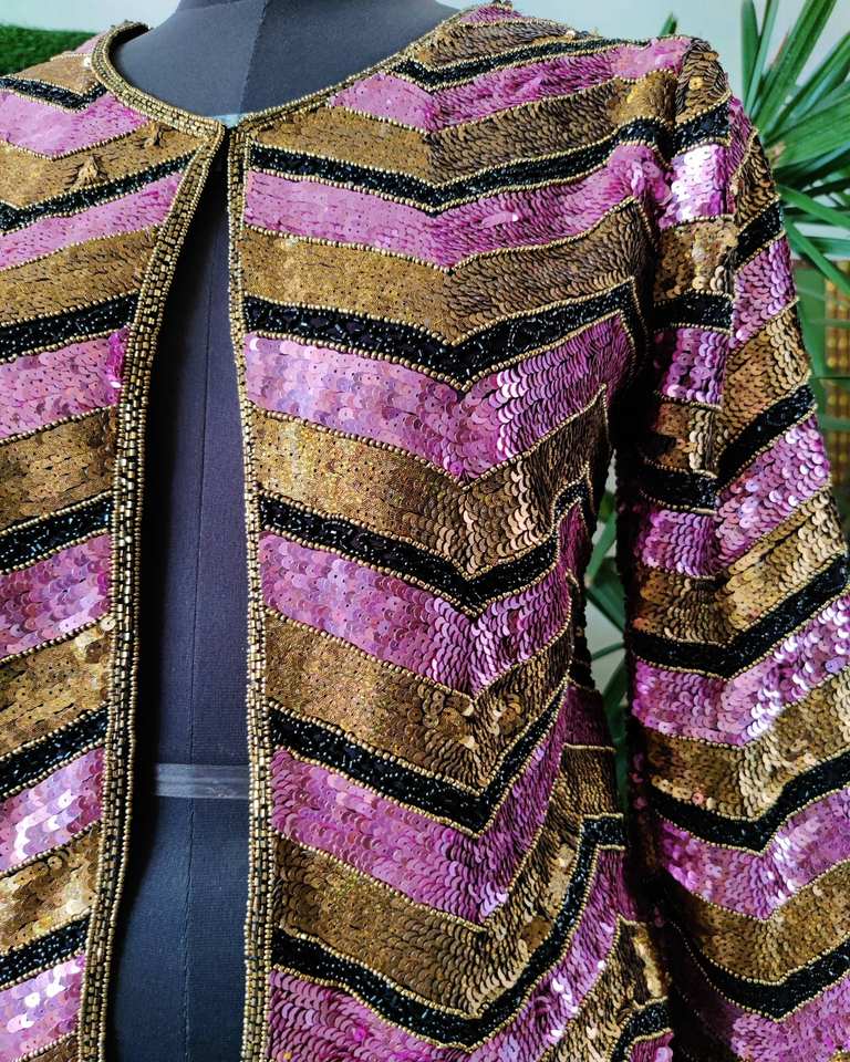 Descripción:Hermosa Chaqueta abierta frontal de lentejuelas con cuentas pesadas
