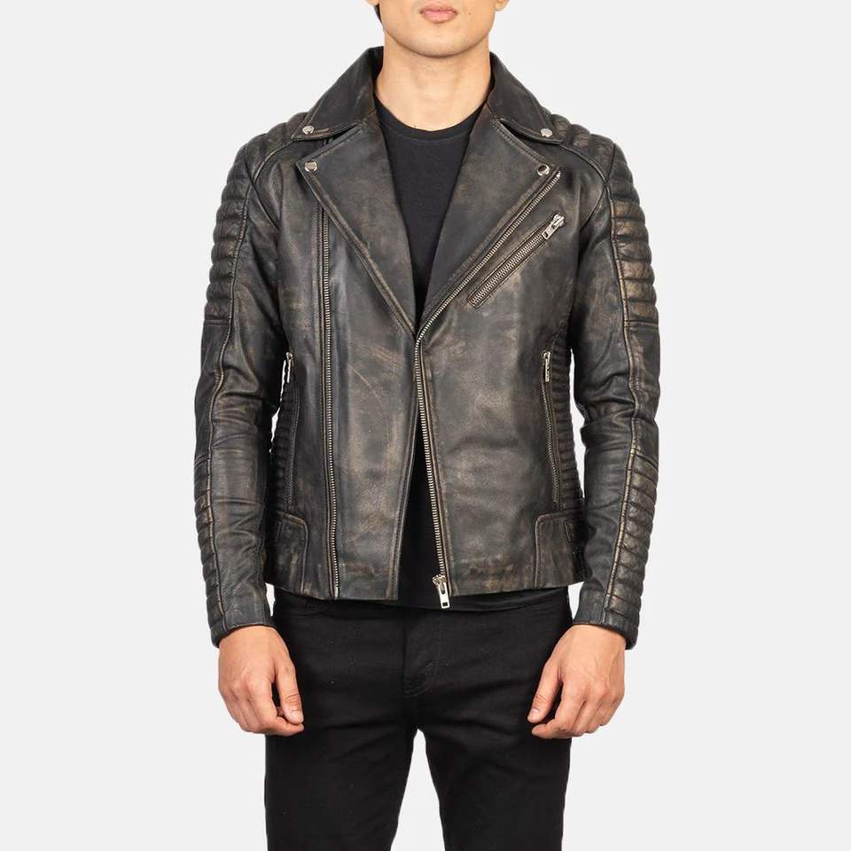Chaqueta de Motociclista de Cuero Marrón Desgastado Personalizable de Alta Calidad, Cuello Alto, Informal, Profesional, Transpirable para Invierno