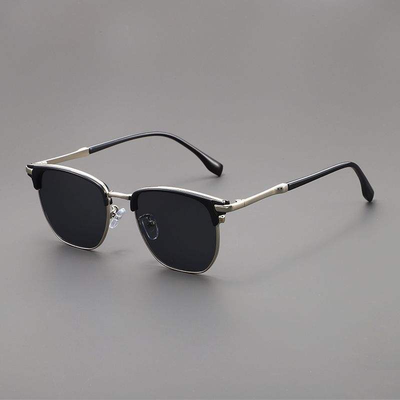 Gafas de Sol Clásicas de Media Montura Personalizables de Alta Calidad para Hombre, Monturas Metálicas Doradas con Lentes UV400, Modelo Actual
