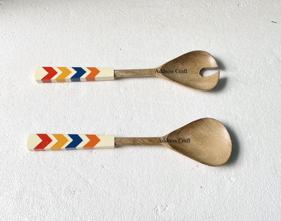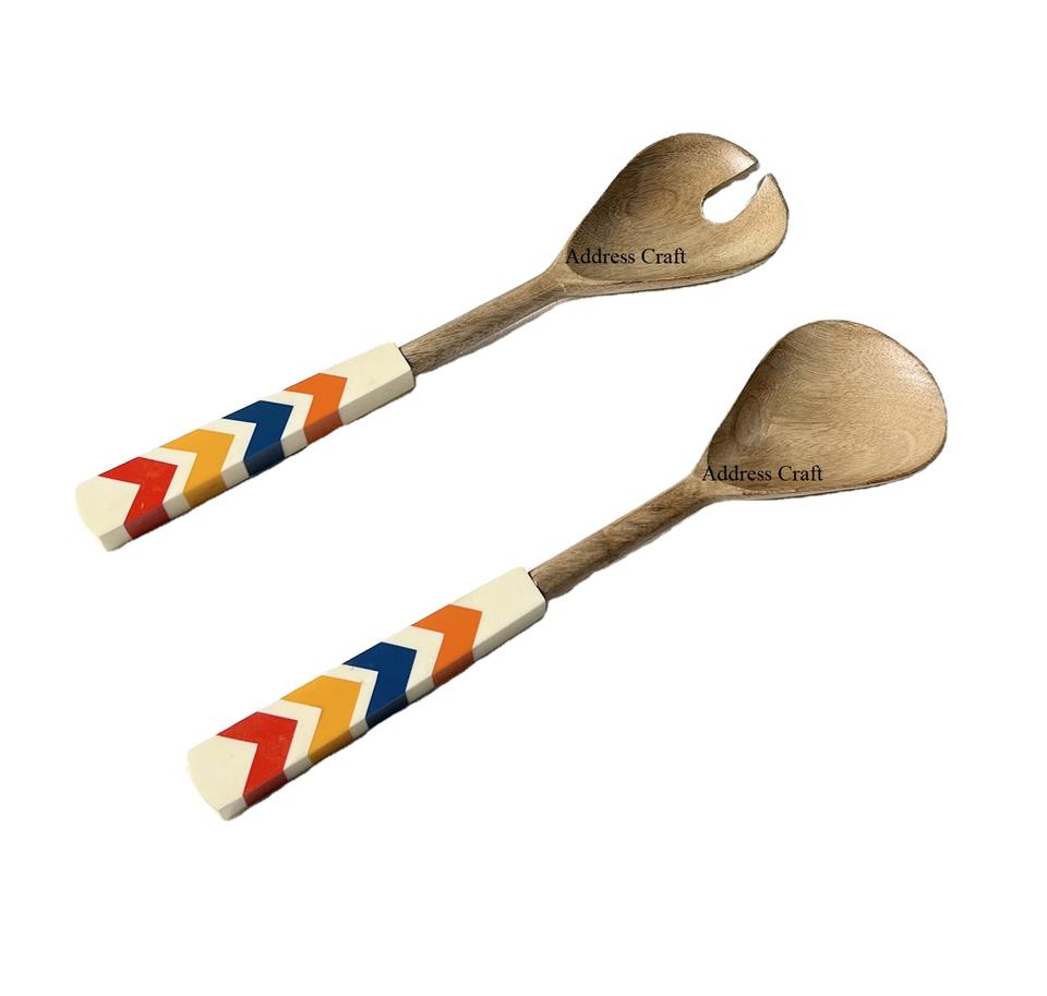 Utensilios para Ensalada de Madera de Mango de Alta Calidad, Personalizables con Logotipo, Ecológicos, Estilo Americano, Mango de Resina Natural, Servidor de Ensalada de 11 Pulgadas