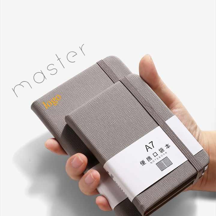 Cuaderno de bolsillo de cuero Mini A7 personalizable de alta calidad con diseño portátil de correa para uso promocional de negocios y logotipo personalizado