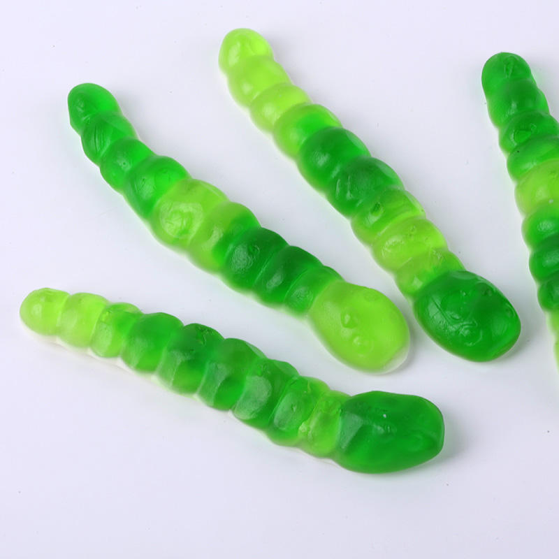 Caramelos de Goma de Alta Calidad con Empaque Personalizable, Fabricante de Caramelos de Goma, Venta al por Mayor, Caramelos de Goma Halal con Forma de Oruga Verde