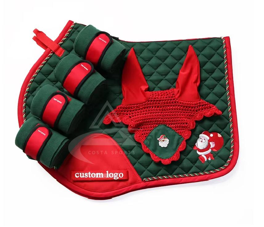 El juego de equipo de equitación de polialgodón personalizable de alta calidad incluye manta de sillín capó de oreja Idea de regalo de Feliz Navidad