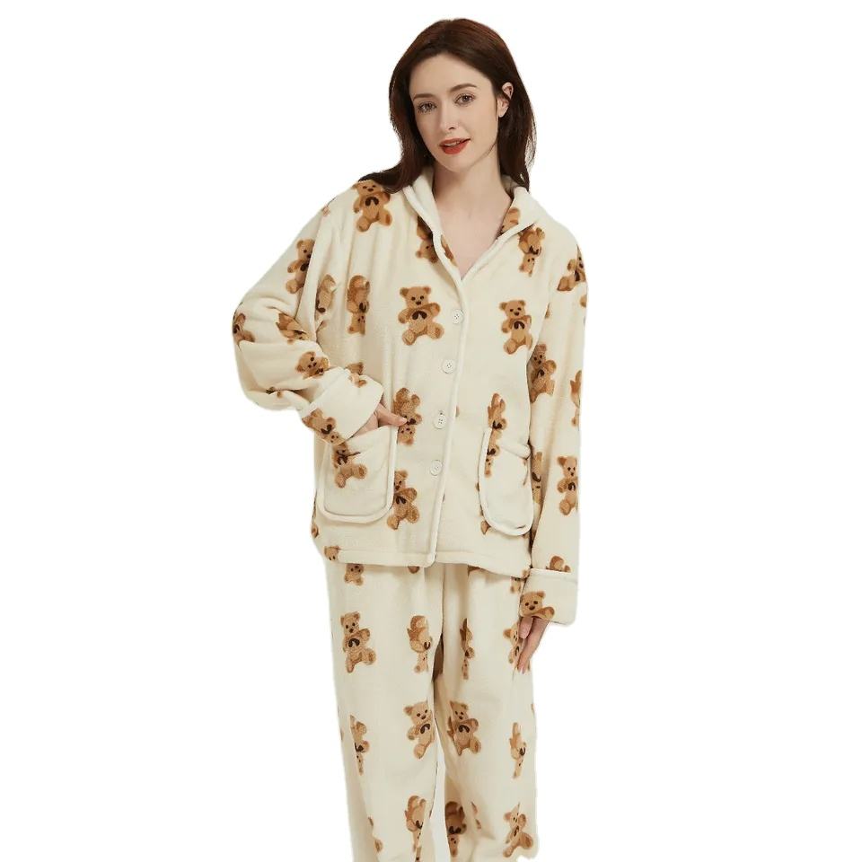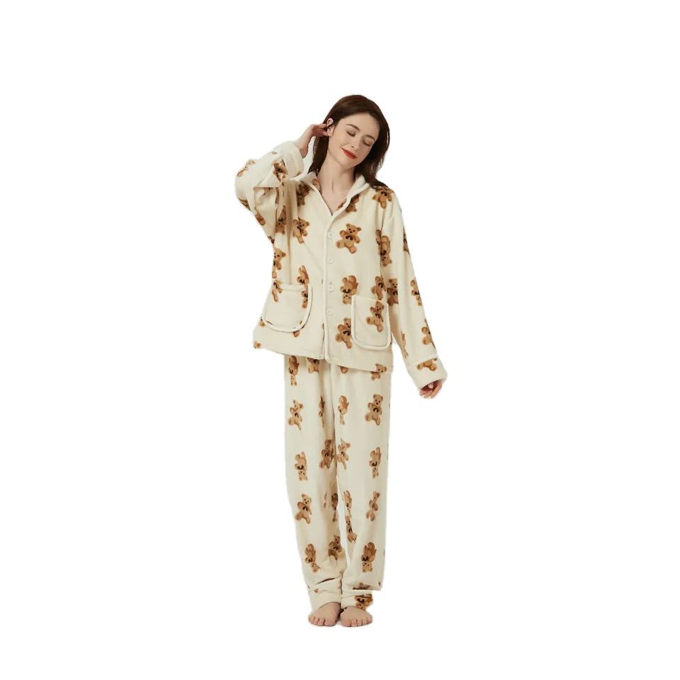 Pijamas de franela de manga larga para mujer, ropa de dormir personalizable con letras estampadas, de alta calidad, venta al por mayor