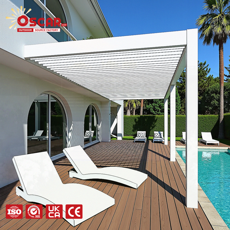Láminas de persiana opcionales:Pérgola de Aluminio Plana de 150mm/Aerofoil de 200mm