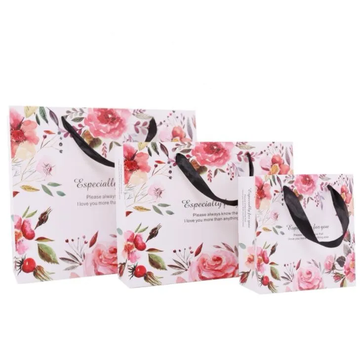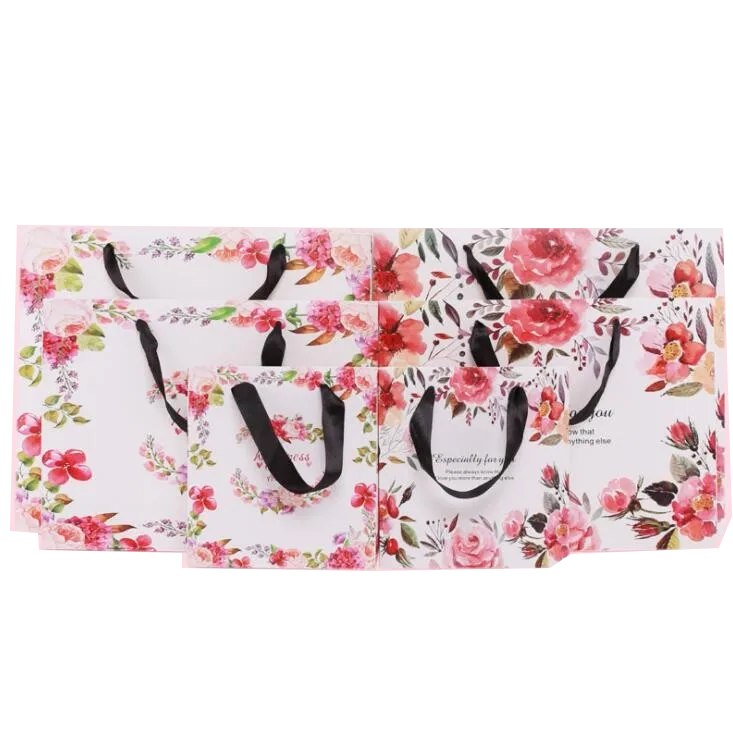 Bolsas de papel blanco personalizables de alta calidad laminadas reciclables con hermoso diseño personalizado