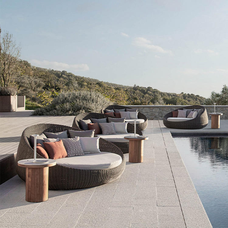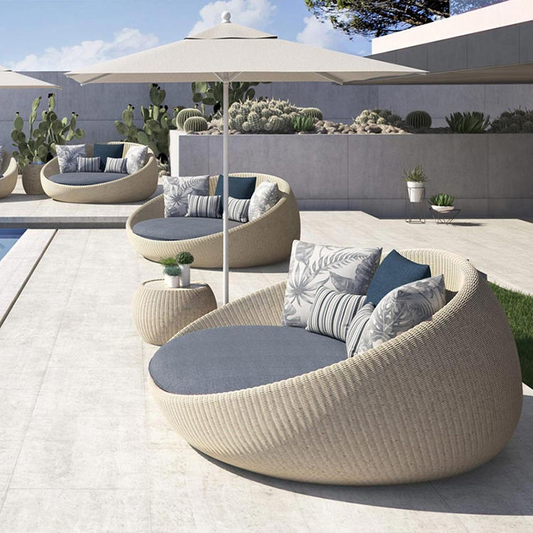 Cama de Jardín de Alta Calidad Personalizable para Patio o Piscina, con Marco de Aluminio Impermeable y Ratán, Diseño Redondo Doble para Exteriores