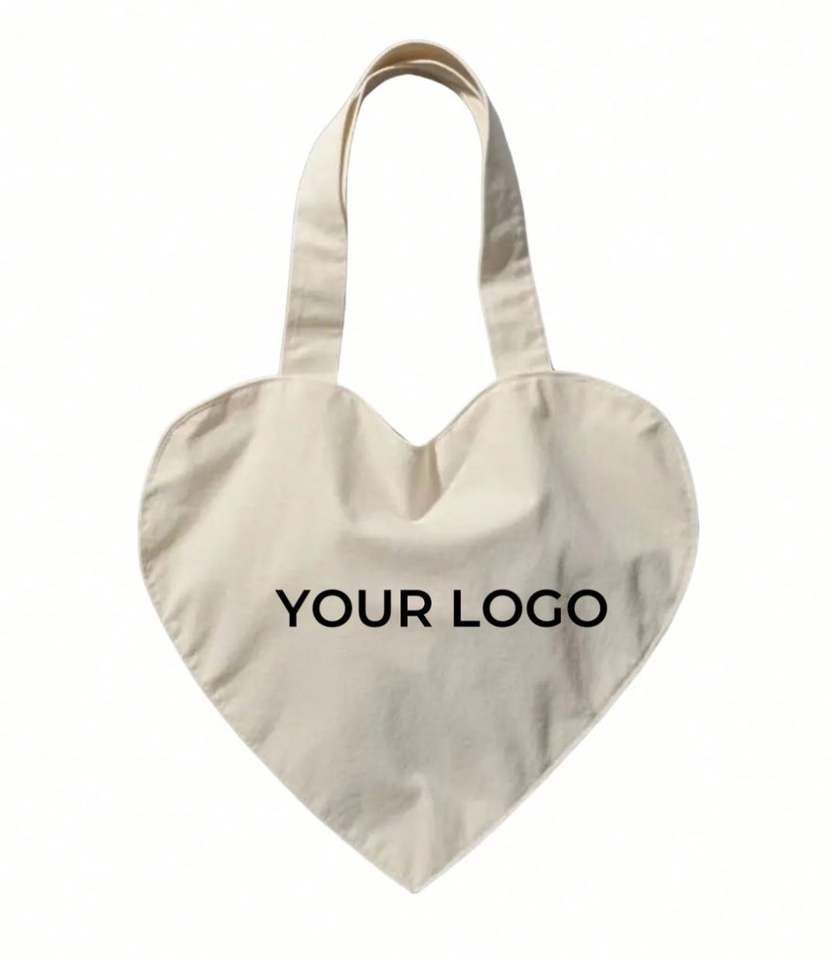Bolsa de Lona Reutilizable de Gran Capacidad, Ecológica, con Estampado Personalizado de Alta Calidad en Color Natural y Forma de Corazón