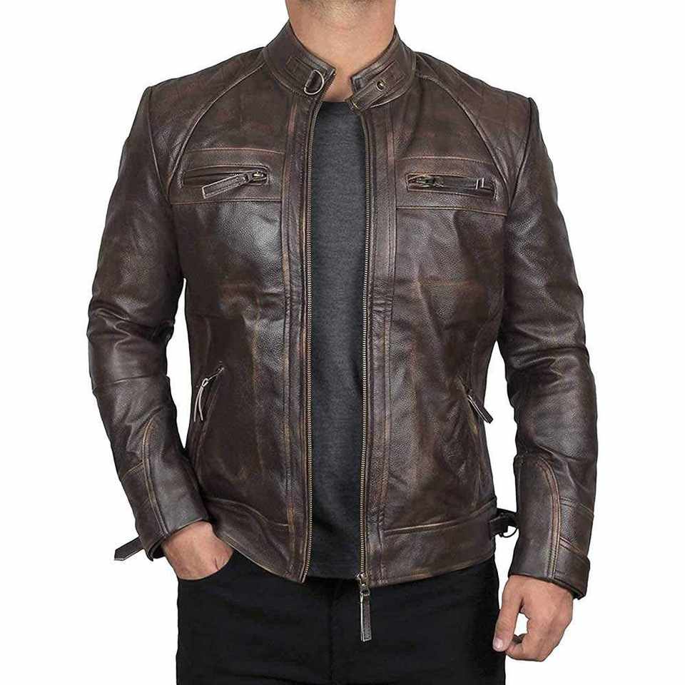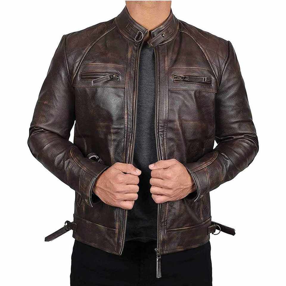 Chaqueta de Cuero Personalizada de Alta Calidad para Hombre, Corte Ajustado, Cuello Alto, 100% Piel de Vaca Genuina, Estilo Vintage con Capucha