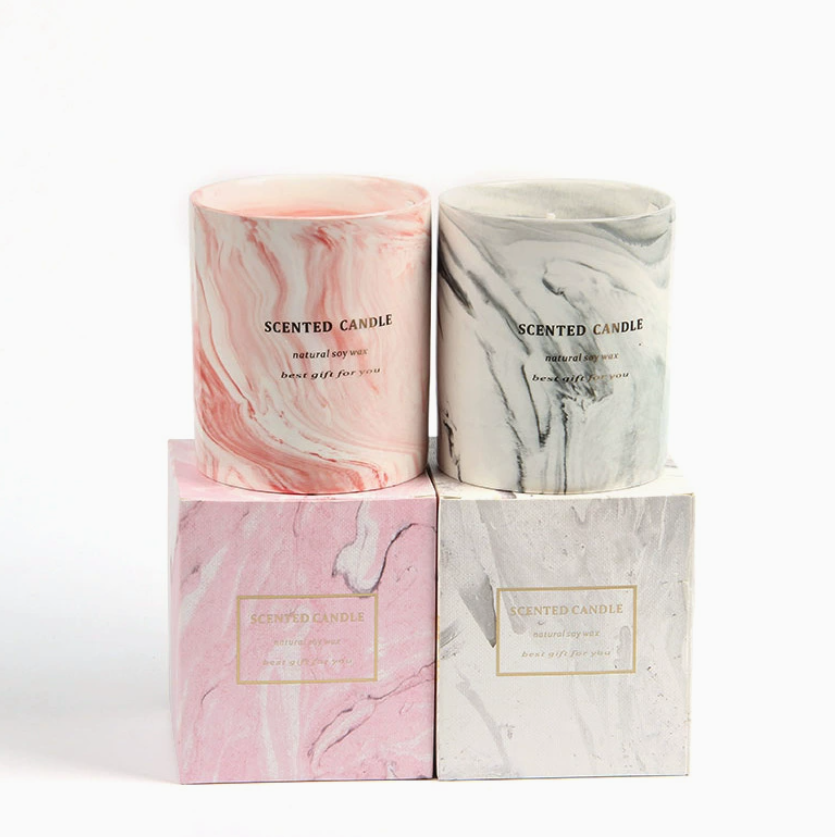 Vela Aromática de Cera de Soja de Larga Duración en Taza de Cerámica con Diseño de Mármol Personalizado de Alta Calidad, Regalos Modernos para Decoración del Hogar