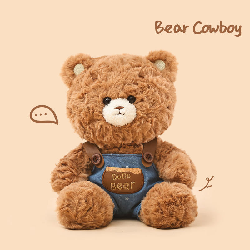 Alta calidad personalizar Unisex lindo Pp algodón Animal relleno alivio del estrés juguete oso de peluche con vaquero para fiesta