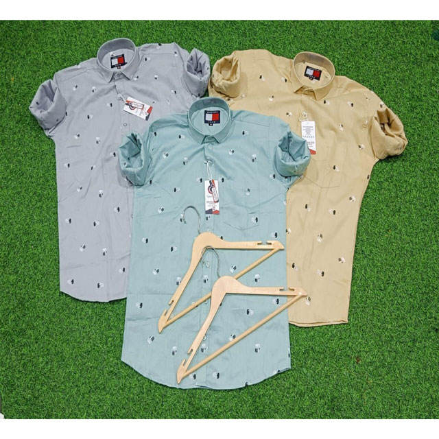 Camisa de sarga de algodón 100% personalizada de alta calidad para hombres Camisetas de vacaciones de diseño impreso teñido de hilo con cuello de Polo Premium