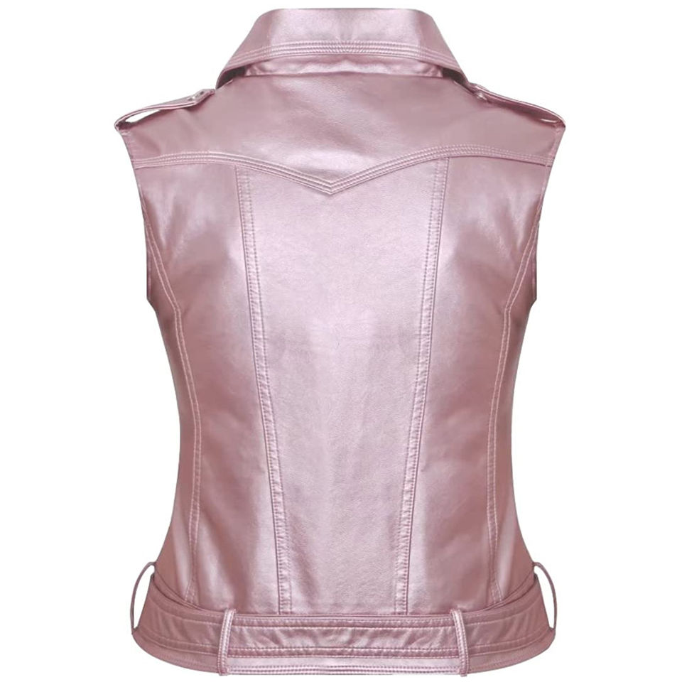 Chaleco de Motociclista para Mujer de Cuero Genuino 100% de Alta Calidad, Color Personalizado, Tejido Vintage, Impermeable y Cortavientos, con Bolsillos
