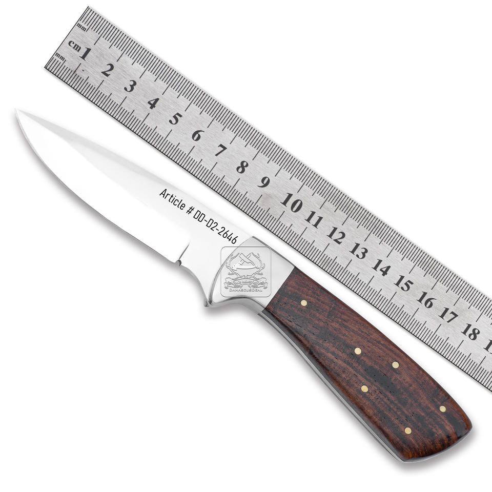 Cuchillo de bolsillo de caza de acero D2 personalizado de alta calidad hecho a mano exótico palisandro Funda de cuero en relieve al por mayor