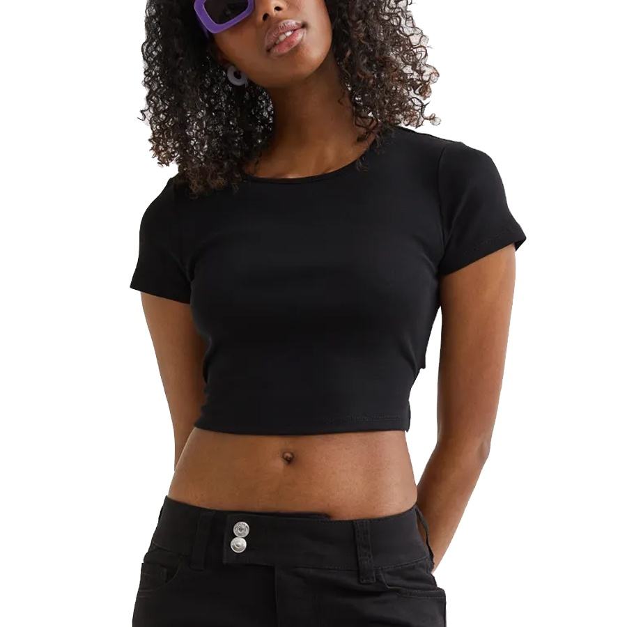 Camisetas cortas con diseño personalizado de alta calidad para mujer, Crop Tops femeninos en blanco y negro, a la venta en tarifas baratas