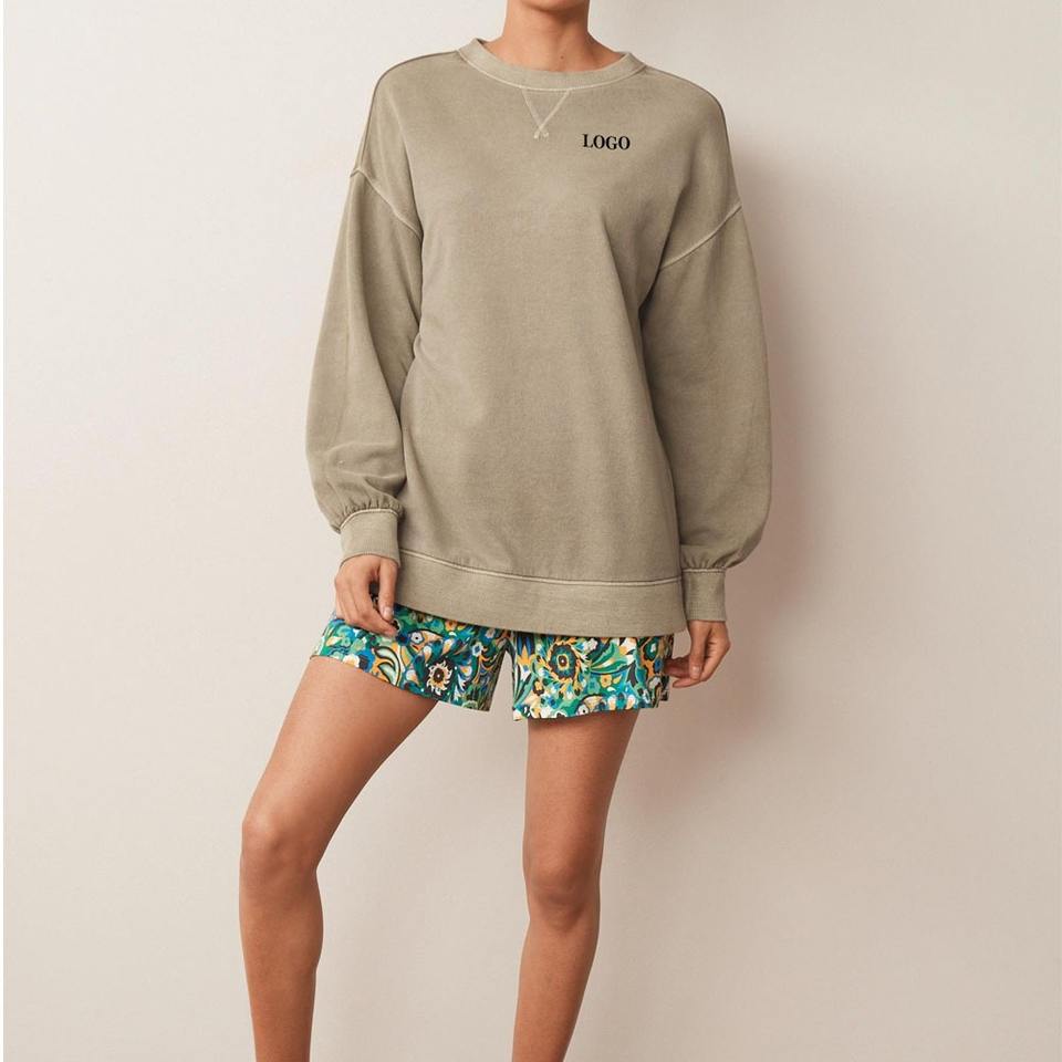 Sudaderas de cuello redondo con hombros caídos personalizadas de alta calidad, sudadera de mujer de Color sólido transpirable de gran tamaño, tarifa barata 2026