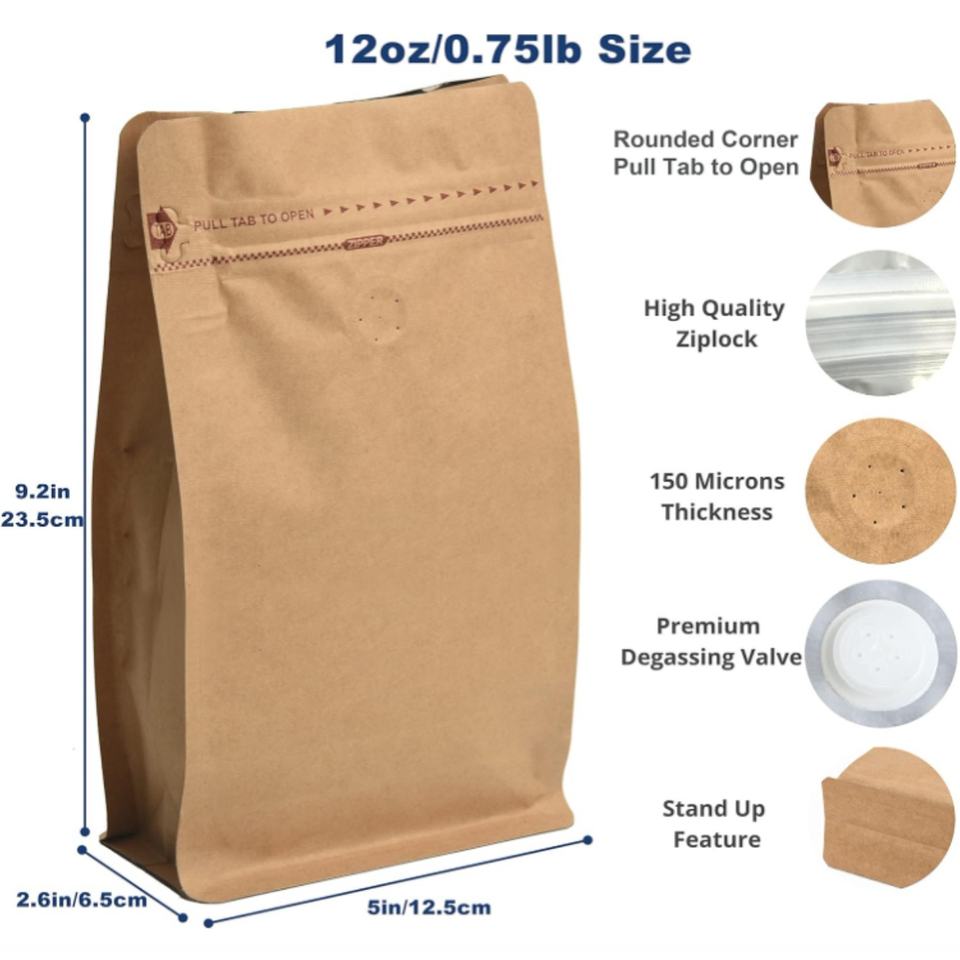 Bolsas de Papel Kraft Florales Impresas de Ocho Lados Personalizadas de Alta Calidad con Fondo Plano para Café, Té y Productos Secos con Válvula