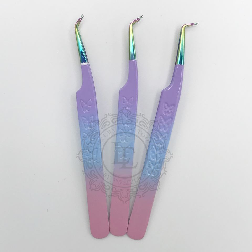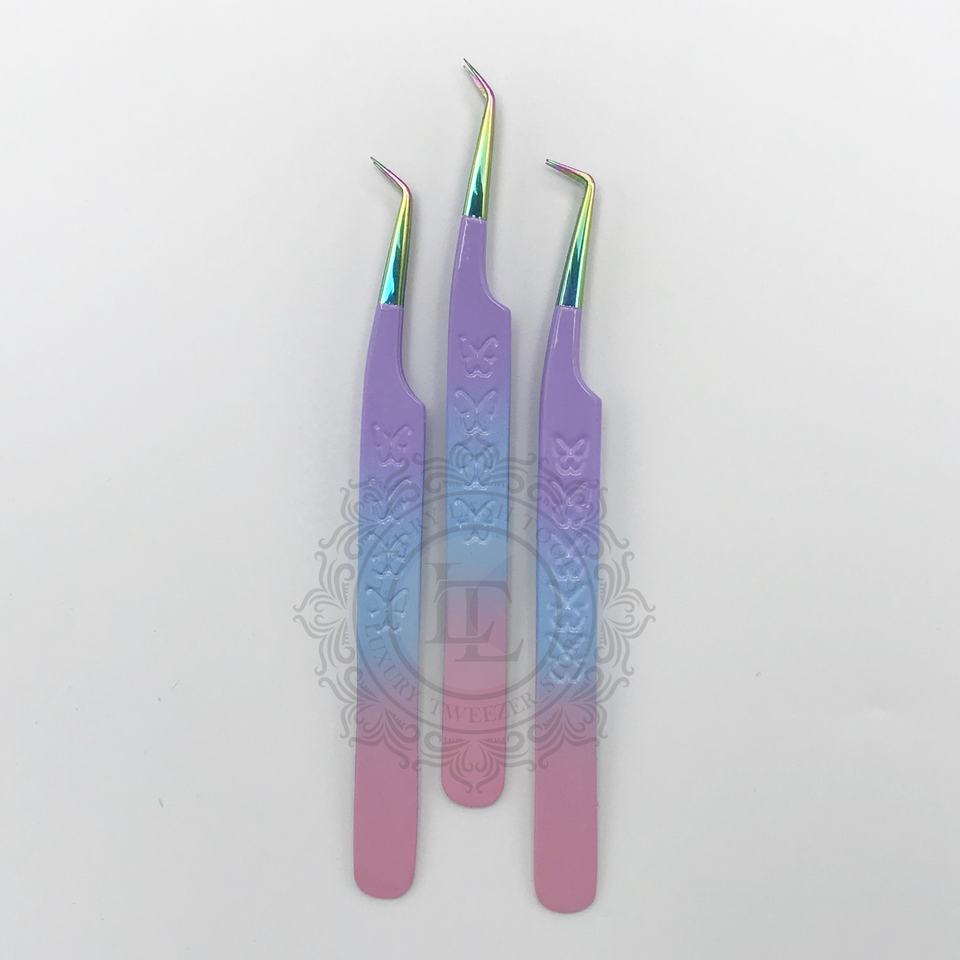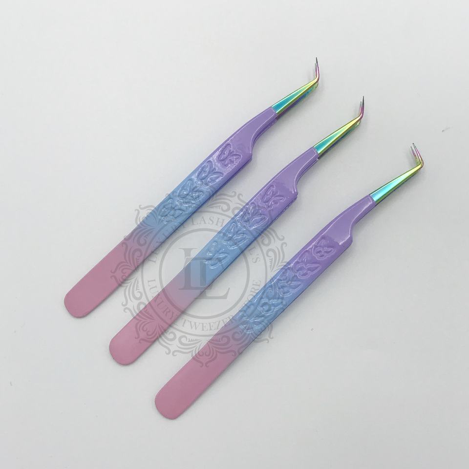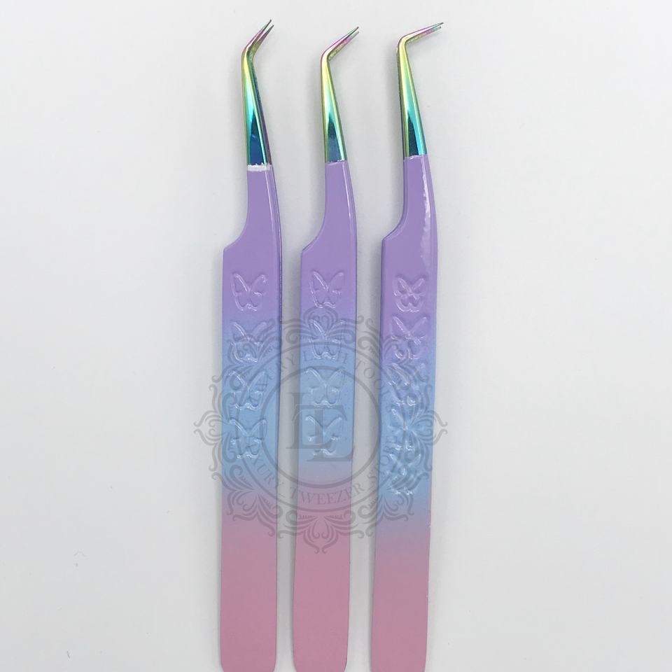 Pinzas de pestañas personalizadas de alta calidad, mango de mariposa puntiagudo, características ecológicas sostenibles, logotipo privado personalizable