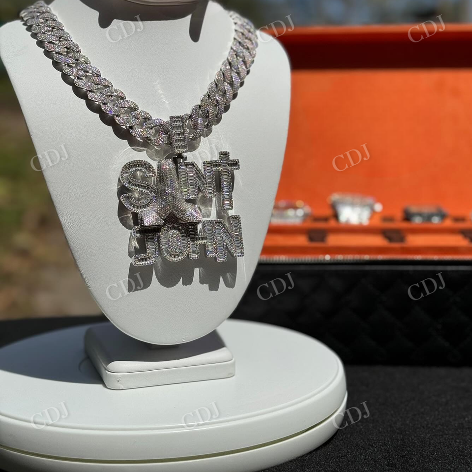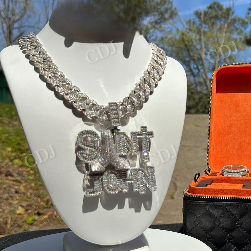 Colgante de Plata de Ley Chapado en Oro con Incrustaciones de Moissanita VVS, Hecho a Mano con Esmalte, de Alta Calidad y Personalizado, para Hombre