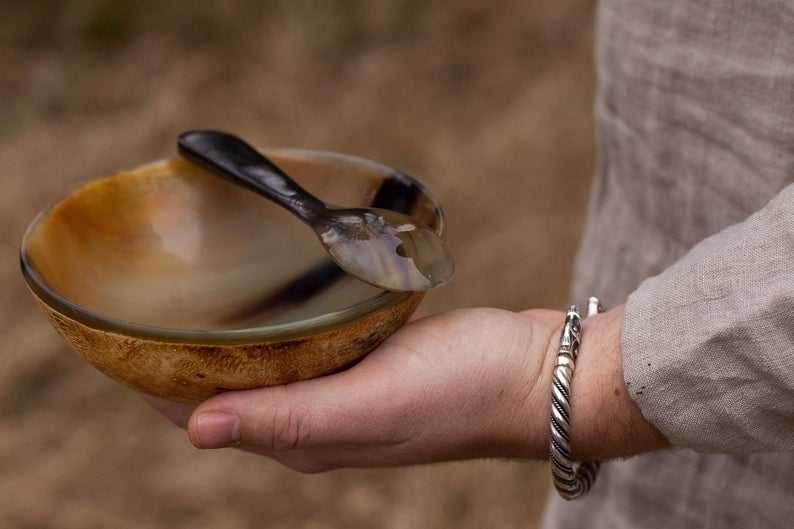 Tazón para Sopa de Cuerno de Alta Calidad, Hecho a Mano, Pulido, con Diseño Tallado, para Fiestas, Apto para Lavavajillas, Ligero