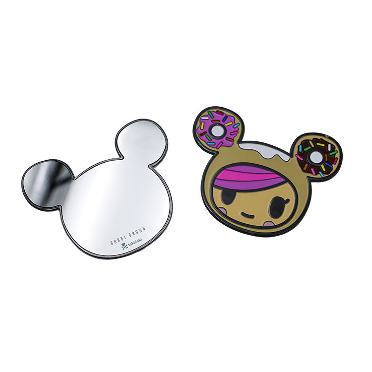 Espejo de Maquillaje de Metal con Marco de Donut Colorido y Diseño de Chica Adorable, Espejo Cosmético de Bolsillo con Aumento, Personalizado y de Alta Calidad