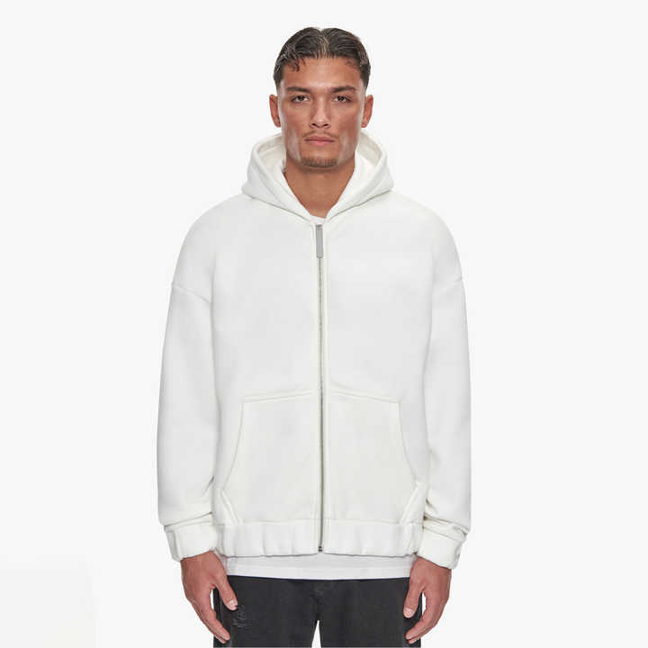 Sudadera con capucha de alta calidad, personalizada, de tejido grueso, mezcla de poliéster/algodón, para hombre, talla grande, con cremallera, hombros caídos, manga larga y bolsillo.