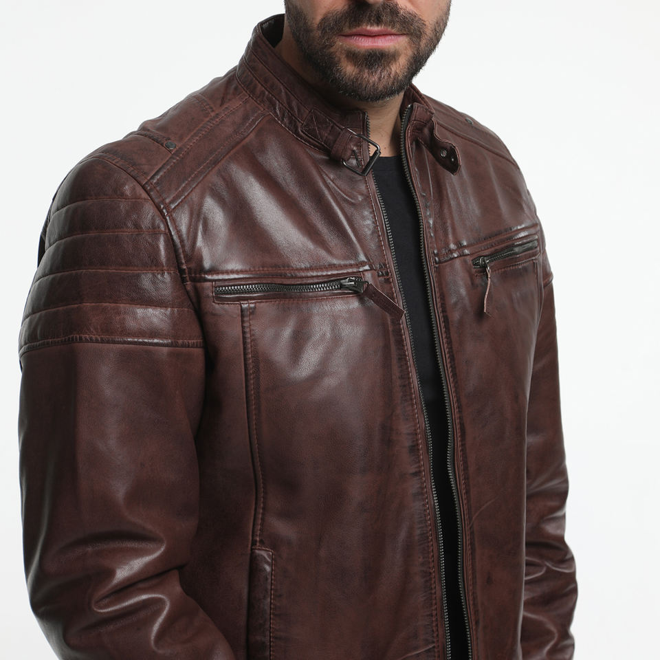 Chaqueta de Cuero para Hombre de Alta Calidad con Logotipo Personalizado, Cuello Alto de Lona, Resistente al Viento, Transpirable, Diseño Urbano