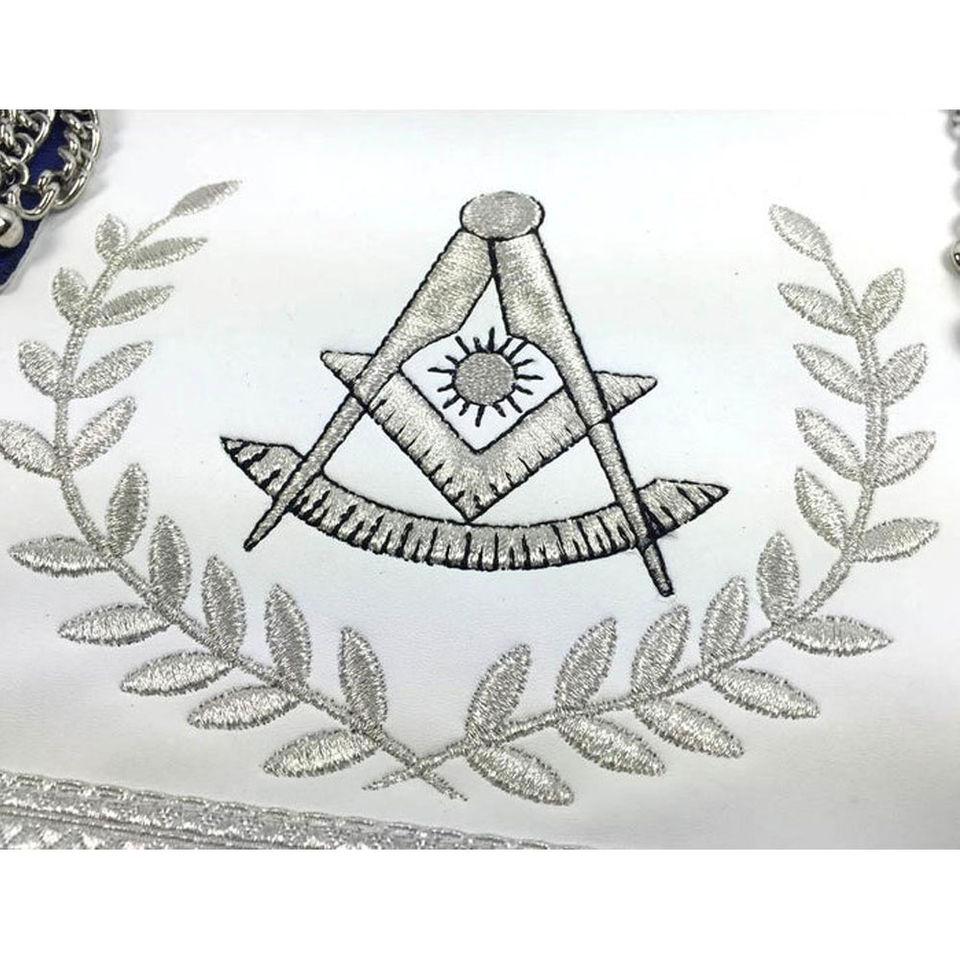 Delantales Masónicos Personalizados de Alta Calidad, Delantales Masónicos Bordados en Azul Rey y Plateado para Past Master de Logia Azul, Nuevos Delantales Masónicos Personalizados