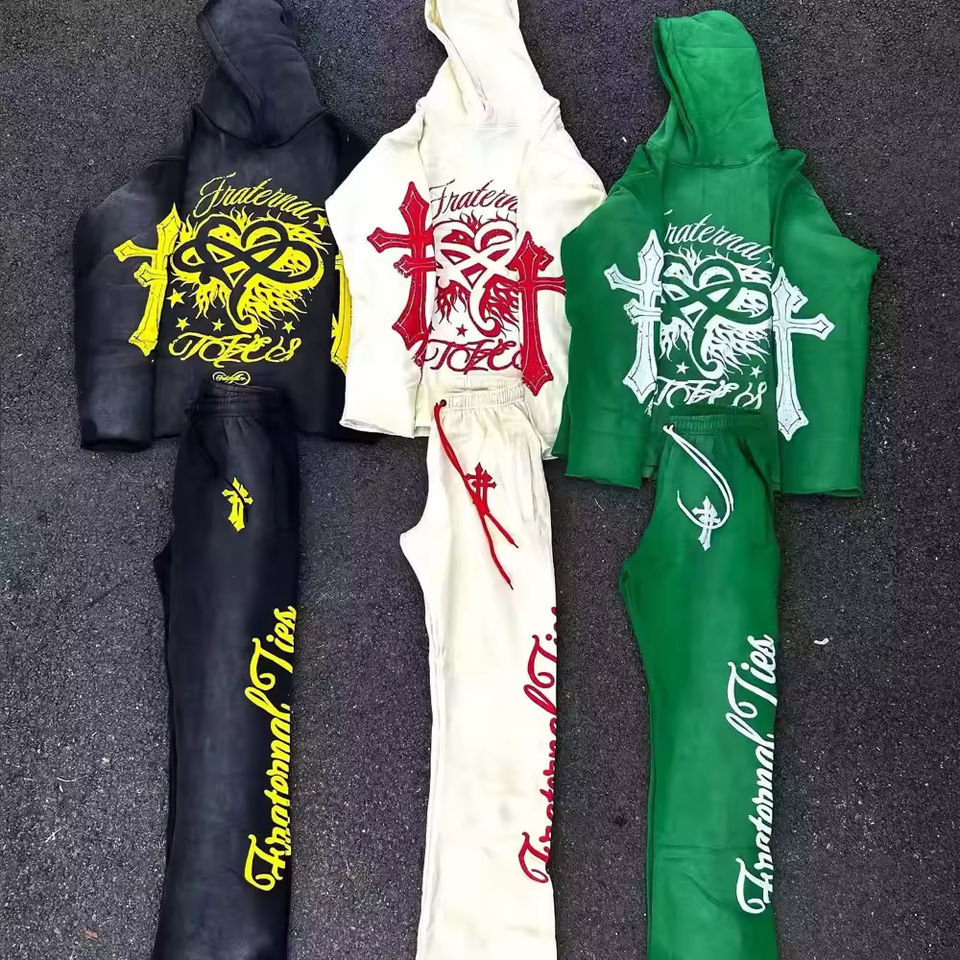 Chándal de hombre personalizado de alta calidad, estilo acampanado, proveedor premium, ropa de moda, chándal con pantalón acampanado para hombre