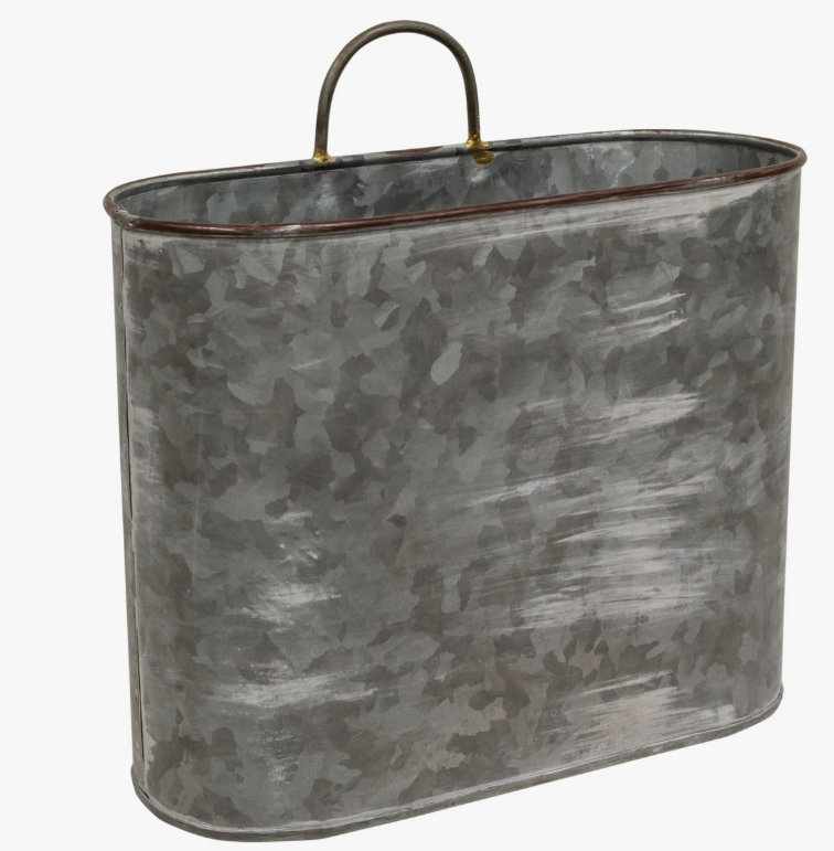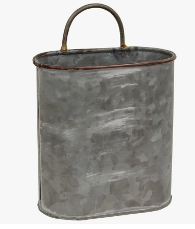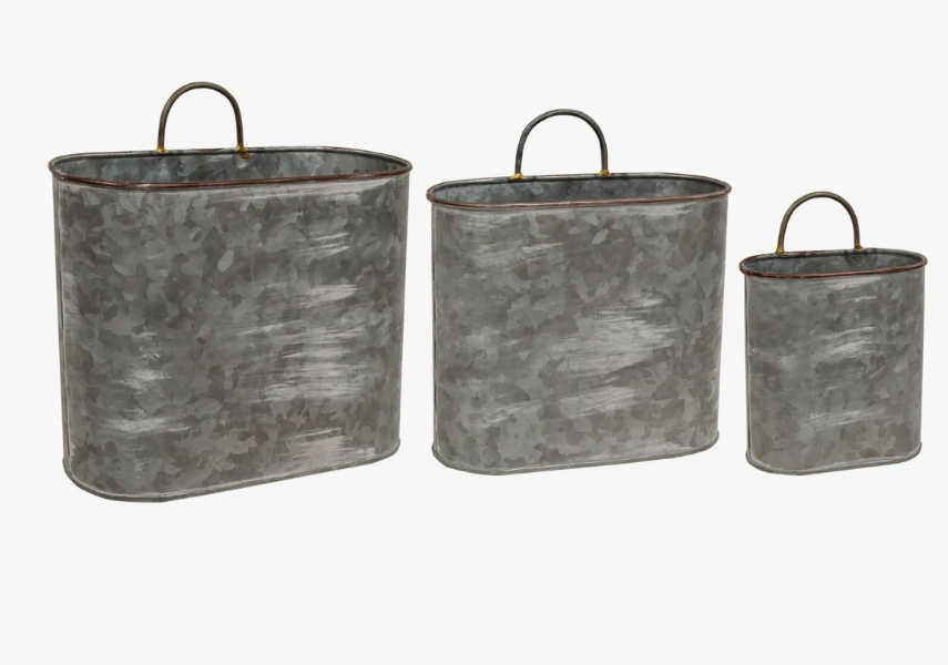 Juego de 3 macetas ovaladas de metal galvanizado estilo rústico para colgar en interiores y exteriores, decoración tipo medio cubo a precio asequible.