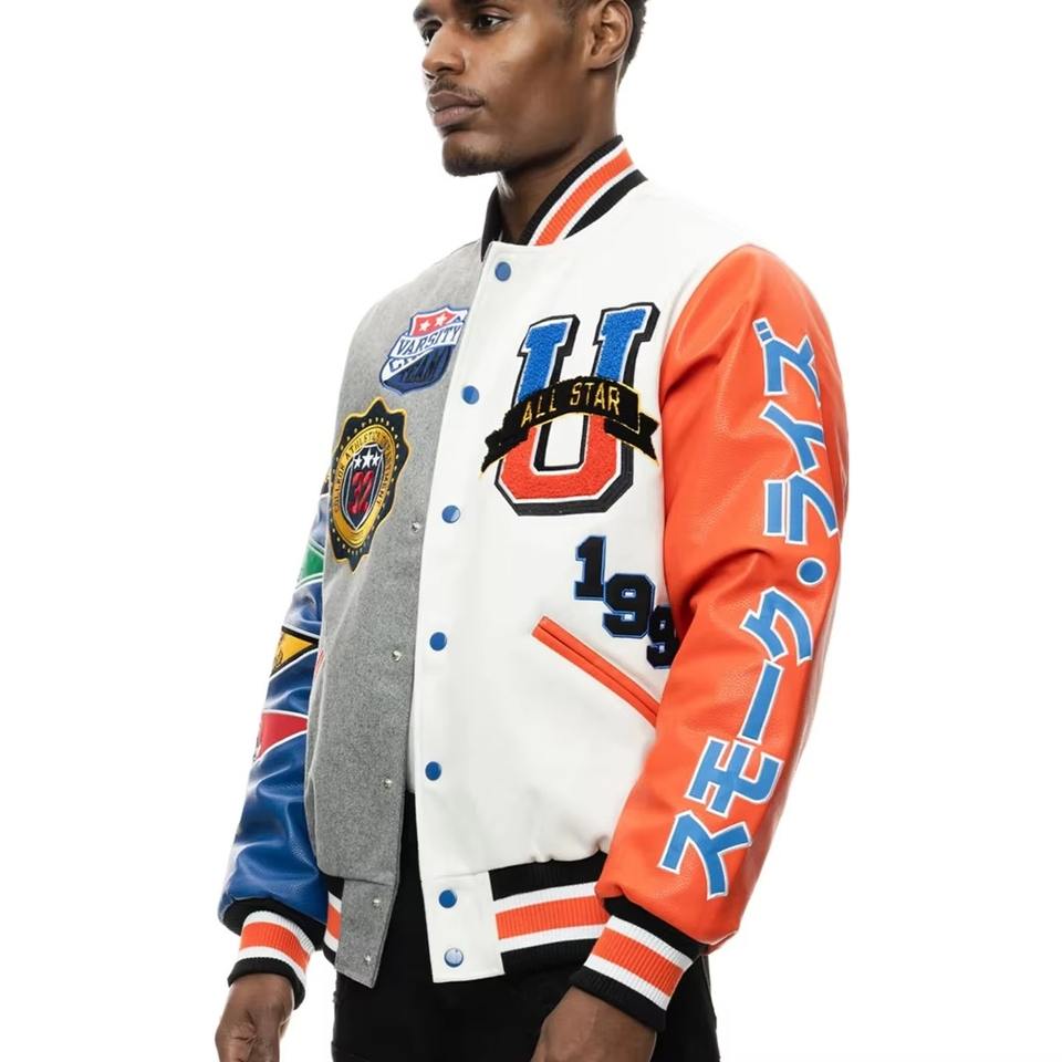 Alta calidad personalizado ODM OEM hombres bombardero béisbol chaqueta de invierno sublimación Universidad Varsity chaquetas diseño personalizado