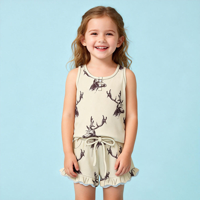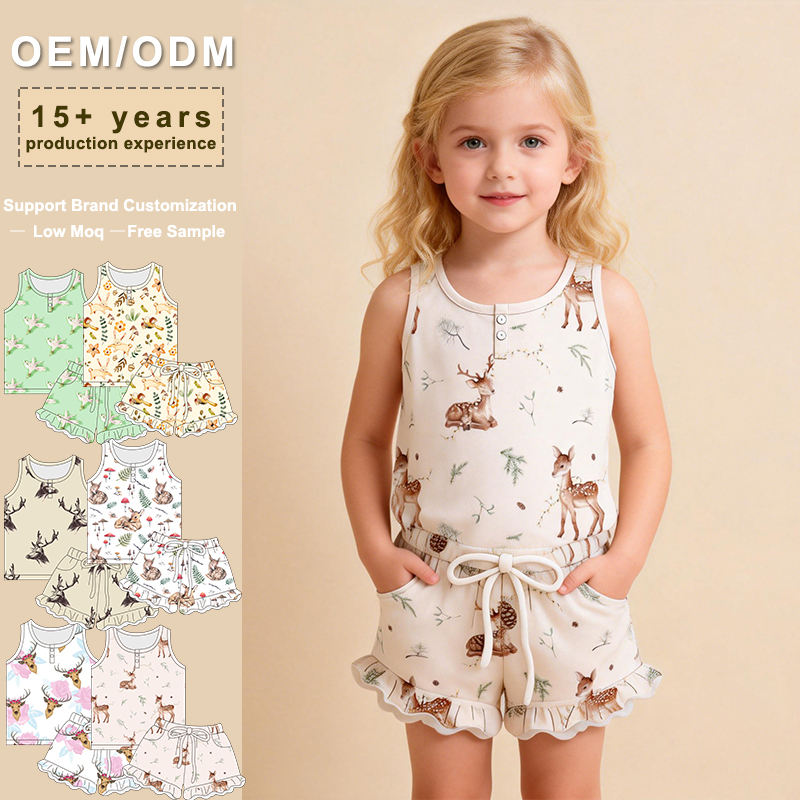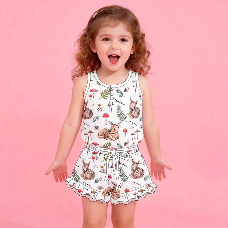Pijamas de Verano para Bebés de Alta Calidad con Estampado Personalizado, Conjunto de 2 Piezas con Top con Volantes y Tirantes para Niñas, Ropa de Dormir de Verano