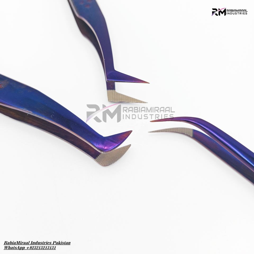 Pinzas para cejas de pestañas de acero inoxidable con Plasma púrpura personalizadas de alta calidad, fibra de volumen profesional, belleza exclusiva