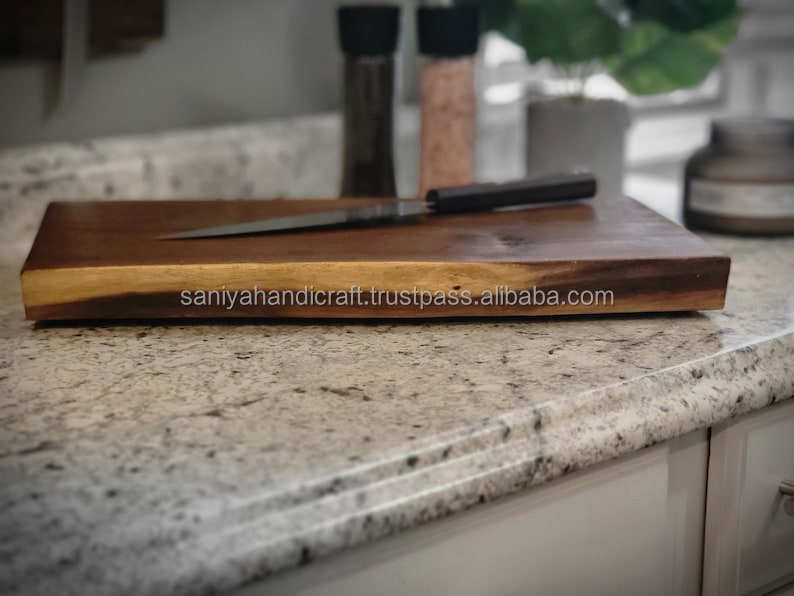 Tabla de cortar de madera de Acacia Rectangular personalizada de alta calidad, madera de caucho sostenible pulida ecológica para negocios