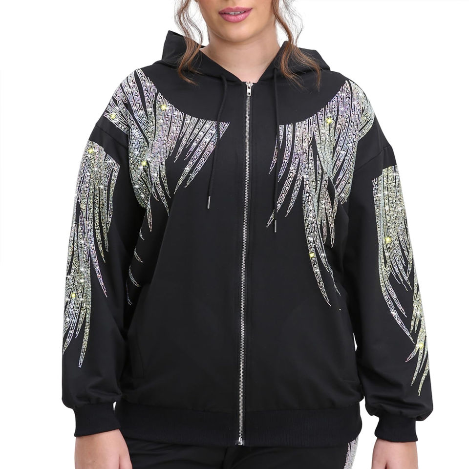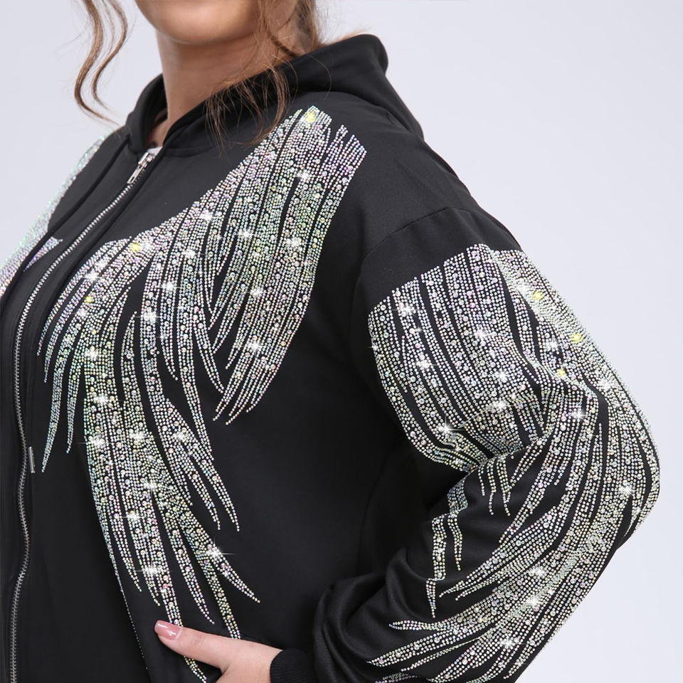Sudadera con Capucha de Alta Calidad Personalizada con Pedrería, Sudadera con Cremallera Completa Transpirable, Sudadera con Pedrería a Precio de Mayoreo