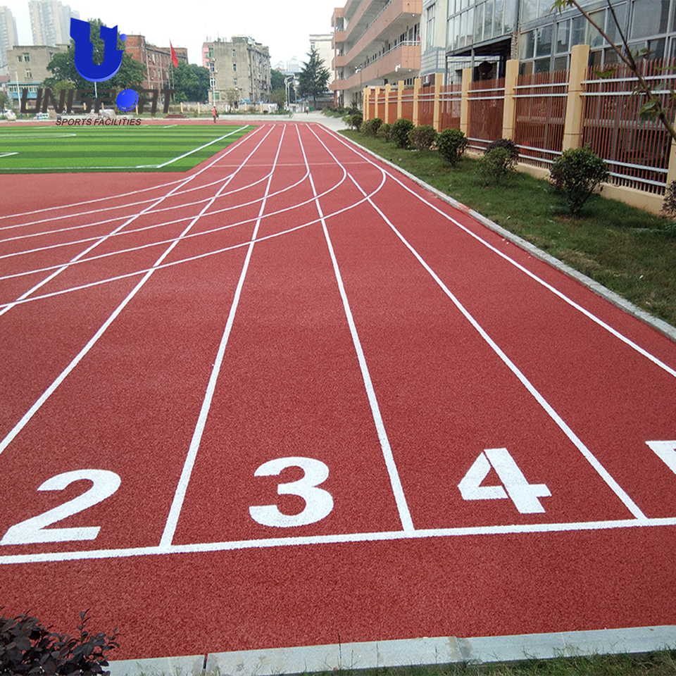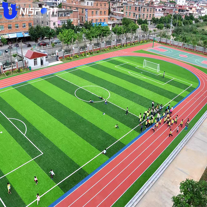 Pista de carreras de goma personalizada de alta calidad para fútbol, alfombrilla de fútbol roja para la escuela