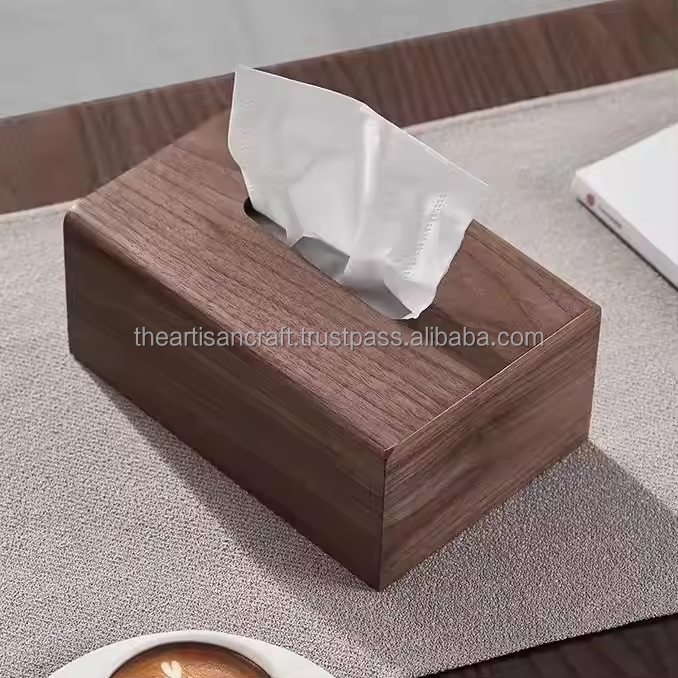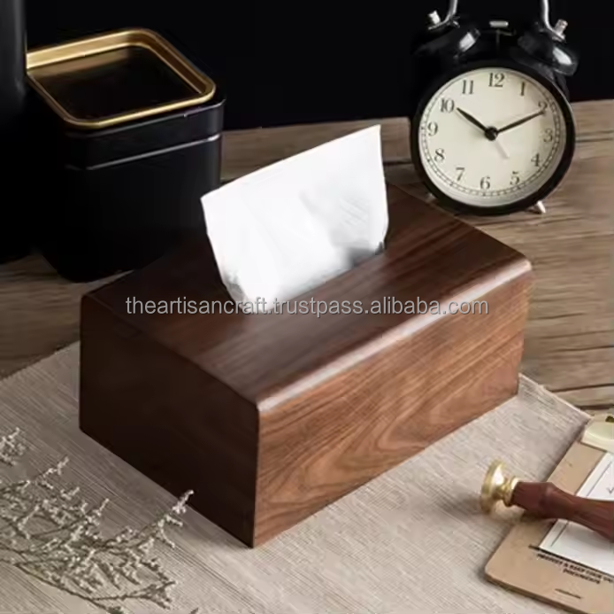 Elegante soporte de madera para pañuelos para tocador de baño y Escritorio de oficina Caja de almacenamiento de madera para Decoración
