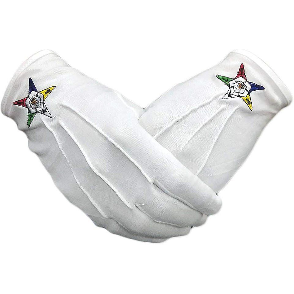 Guantes de Algodón Blancos Personalizados de Alta Calidad para la Orden Masónica Estrella del Este, Modelo Internacional Estrella Provincial PSI122
