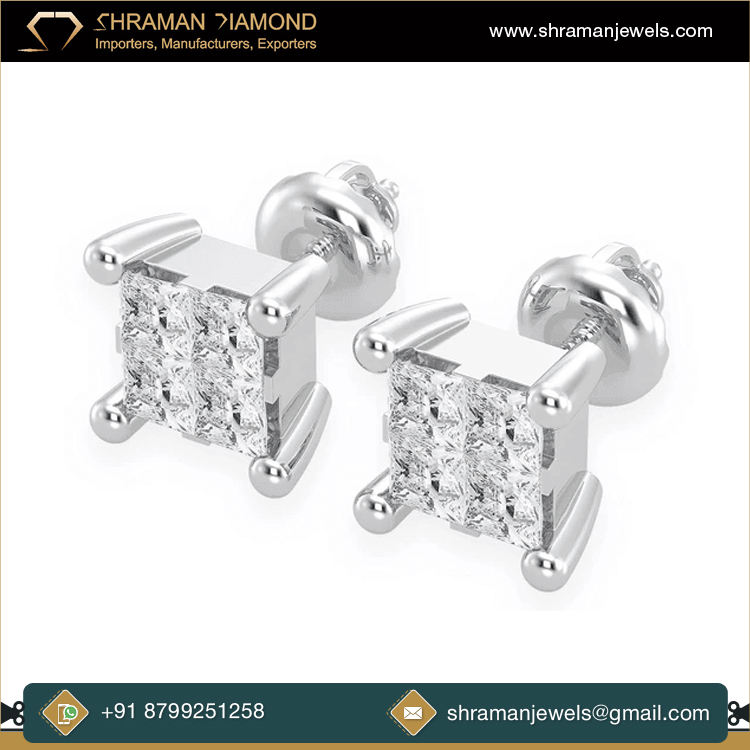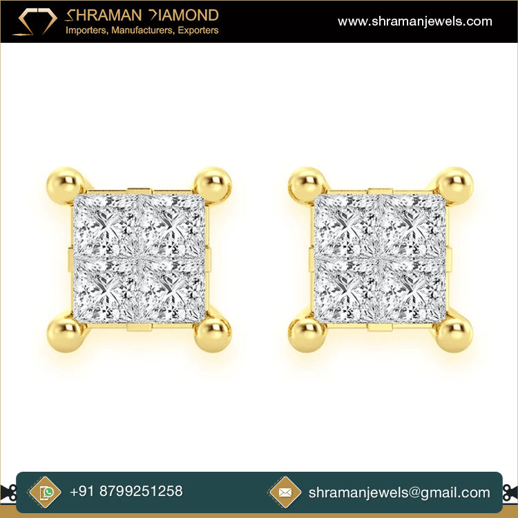 Princess Cut Cluster Diamond EarringTipo de pendientes