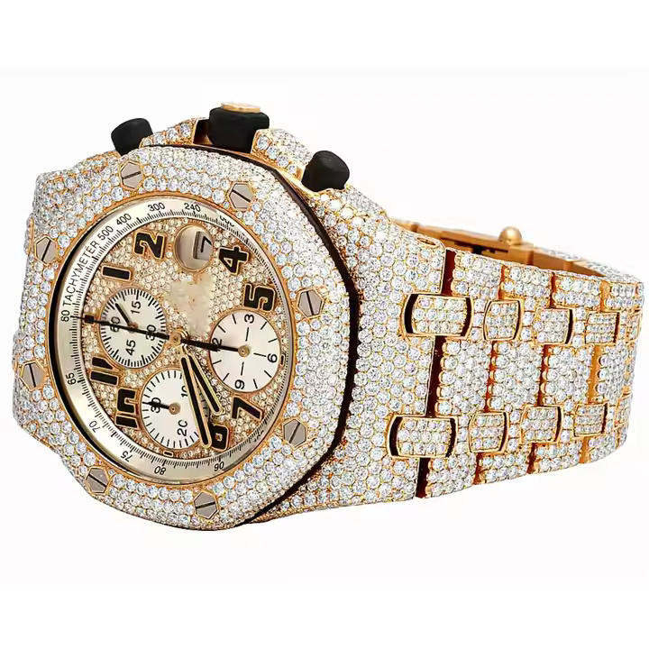 Correa de acero inoxidable de 20mm de alta calidad, 41mm DEF VVS, reloj de diamante incoloro cultivado en laboratorio, cristal mecánico, estilo Hip Hop, deporte